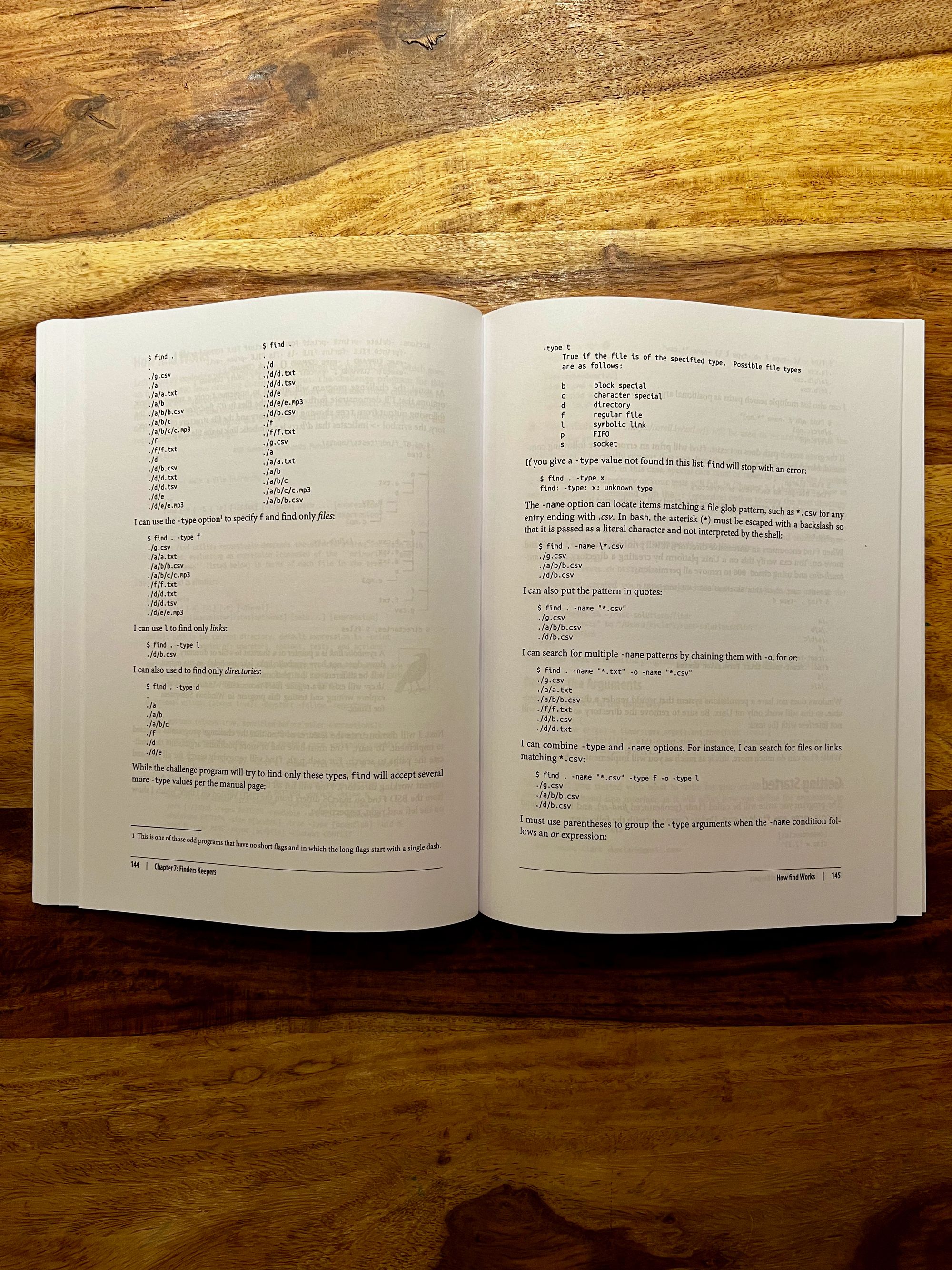 The chapters begin with the description of the original program, showing an excerpt of its man pages for both GNU and BSD versions (more on this later).